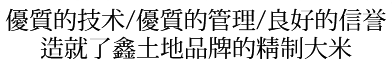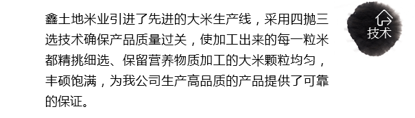 坐落在國(guó)家優(yōu)質(zhì)寒地水稻生產(chǎn)基地之一的松嫩平原腹地綏化市秦家鎮(zhèn),諾敏河,呼蘭河澆灌的黑色草甸土地,富含硒 鉀 鈣 鐵等礦物質(zhì),無(wú)污染的環(huán)境,豐產(chǎn)的水稻資源,使鑫土地米業(yè)不斷發(fā)展壯大,成為綏化地區(qū)新崛起的一支精制大米生產(chǎn)的生力軍。